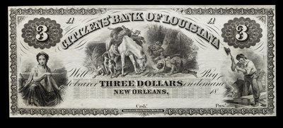 Obsolete $3 Bank Note: Citizens' Bank of Louisiana