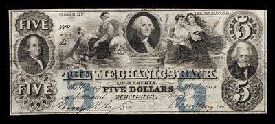Obsolete $5 Bank Note: The Mechanics Bank of Memphis