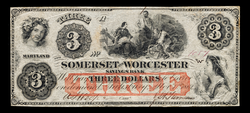 Obsolete $3 Bank Note: The Somerset & Worcester Savings Bank