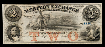 Obsolete $2 Bank Note: The Western Exchange Fire & Insurance Co.