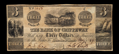 Obsolete $3 Bank Note: The Bank of Chippeway