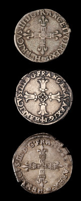 MEDIEVAL: Three Henry IV Silver 1/4 Ecu Coins