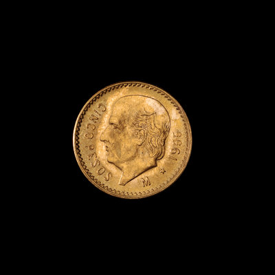 A Republic of Mexico 1955-M 5 Peso Gold Coin