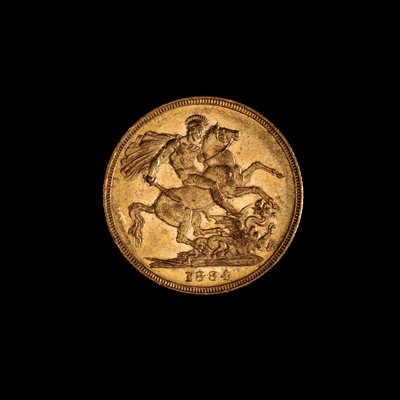 A United Kingdom 1884-M Sovereign: Young Victoria-Melbourne Mint Gold Coin