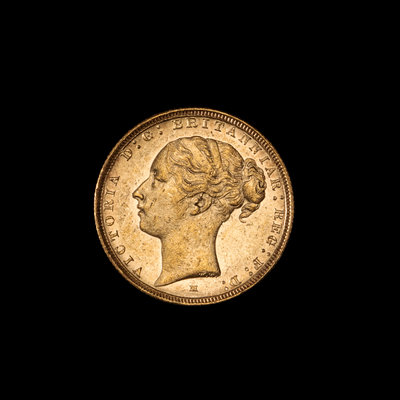 A United Kingdom 1885-M Sovereign: Young Victoria-Melbourne Mint Gold Coin
