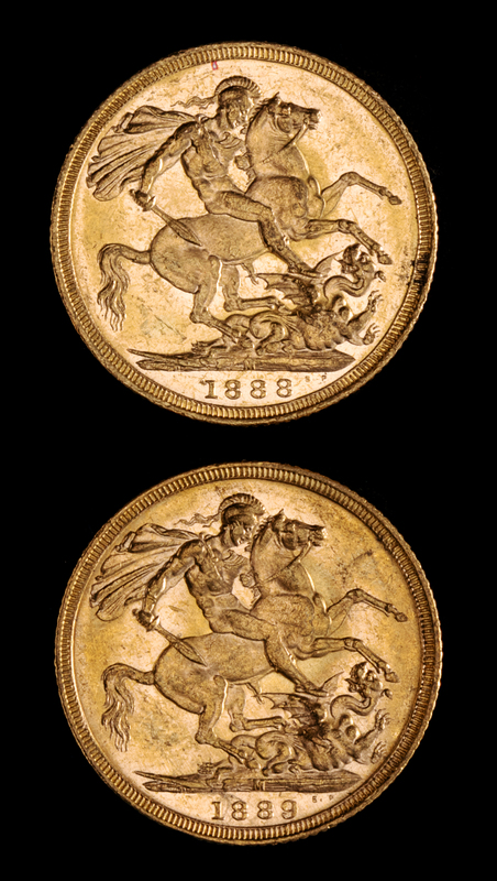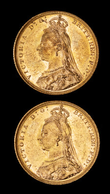 Two United Kingdom 1889-M Sovereign: Jubilee Head-Melbourne Mint Gold Coin