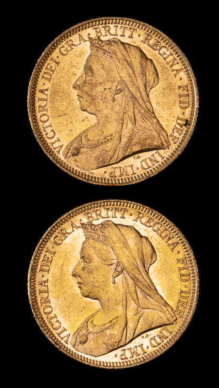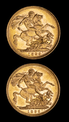 Two United Kingdom 1895-M Sovereign: Veiled Head-Melbourne Mint Gold Coin