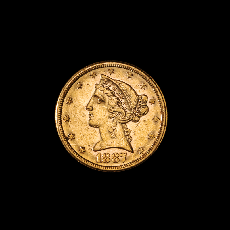 A United States 1887-S Liberty Head $5 Gold Coin