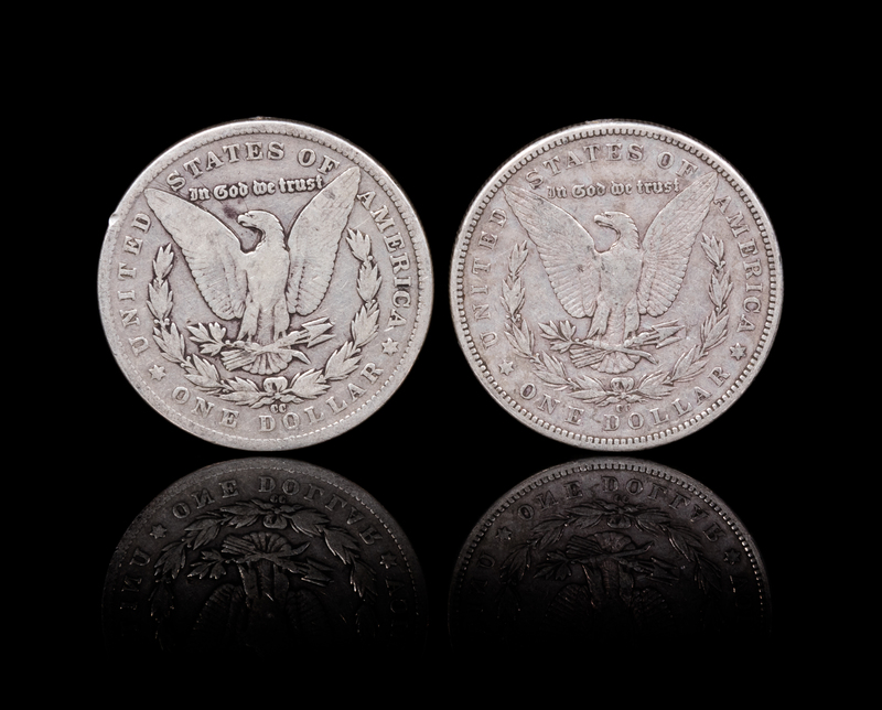 Two United States 1882-CC Morgan Silver Dollar Coins