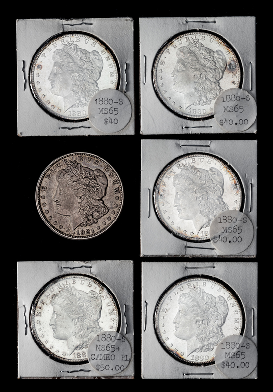 A Group of Five United States 1880-S Morgan Silver Dollar Coins