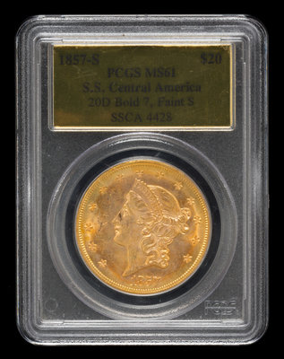 A United States 1857-S S.S. Central America: Liberty Head $20 Gold Coin