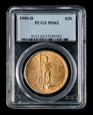 A United States 1909-D St. Gaudens $20 Gold Coin