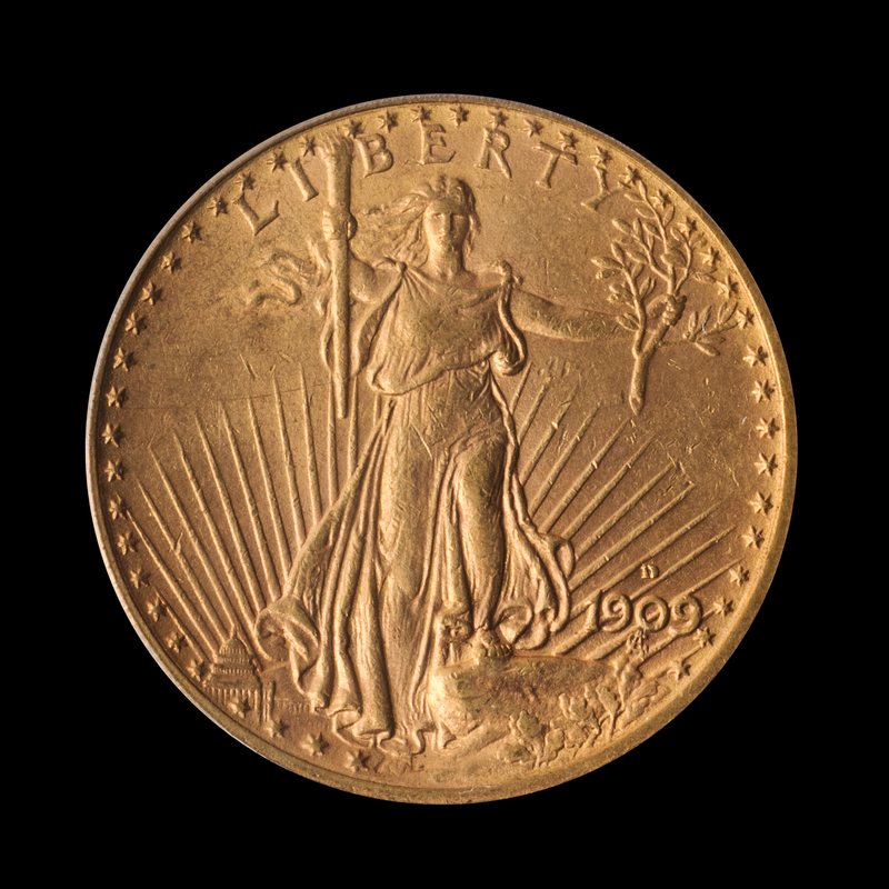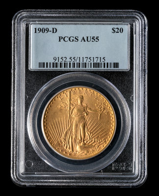 A United States 1909-D St. Gaudens $20 Gold Coin