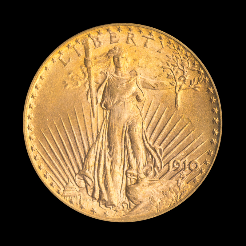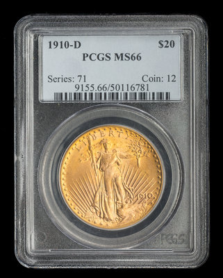 A United States 1910-D St. Gaudens $20 Gold Coin