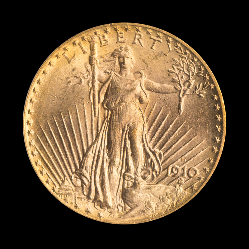 A United States 1910-D St. Gaudens $20 Gold Coin