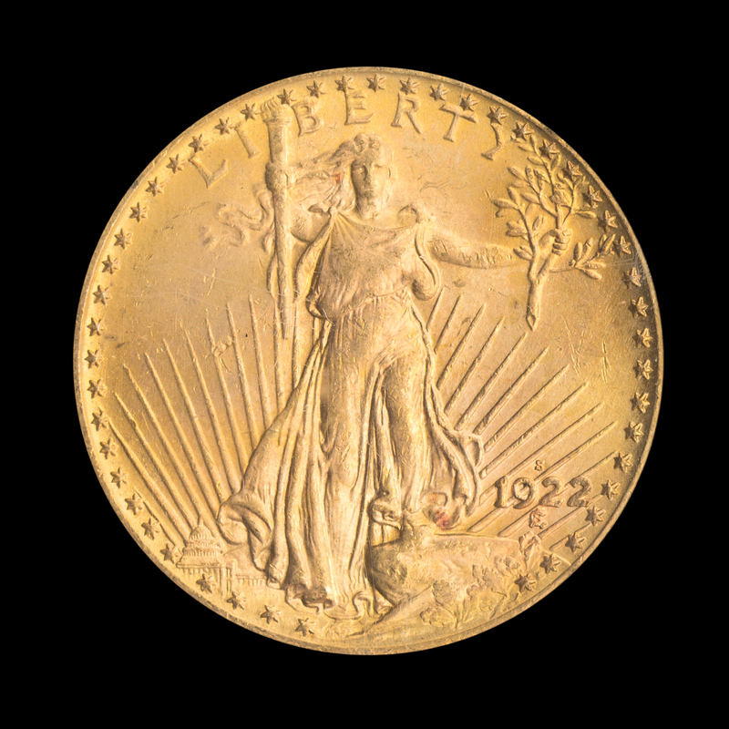 A United States 1922-S St. Gaudens $20 Gold Coin