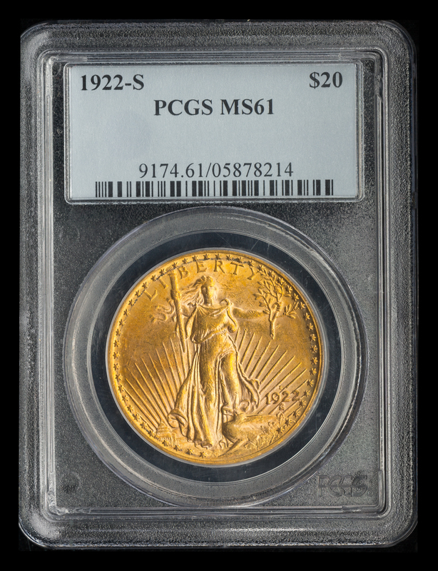 A United States 1922-S St. Gaudens $20 Gold Coin
