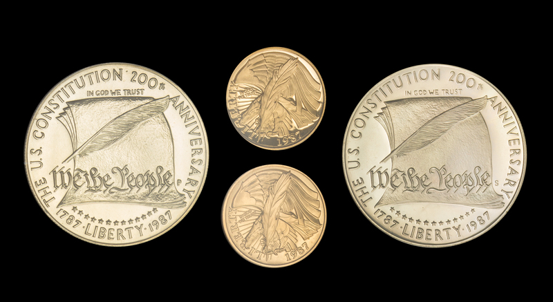 A United States 1987 Constitution Bicentennial Commemorative 4 Coin Set