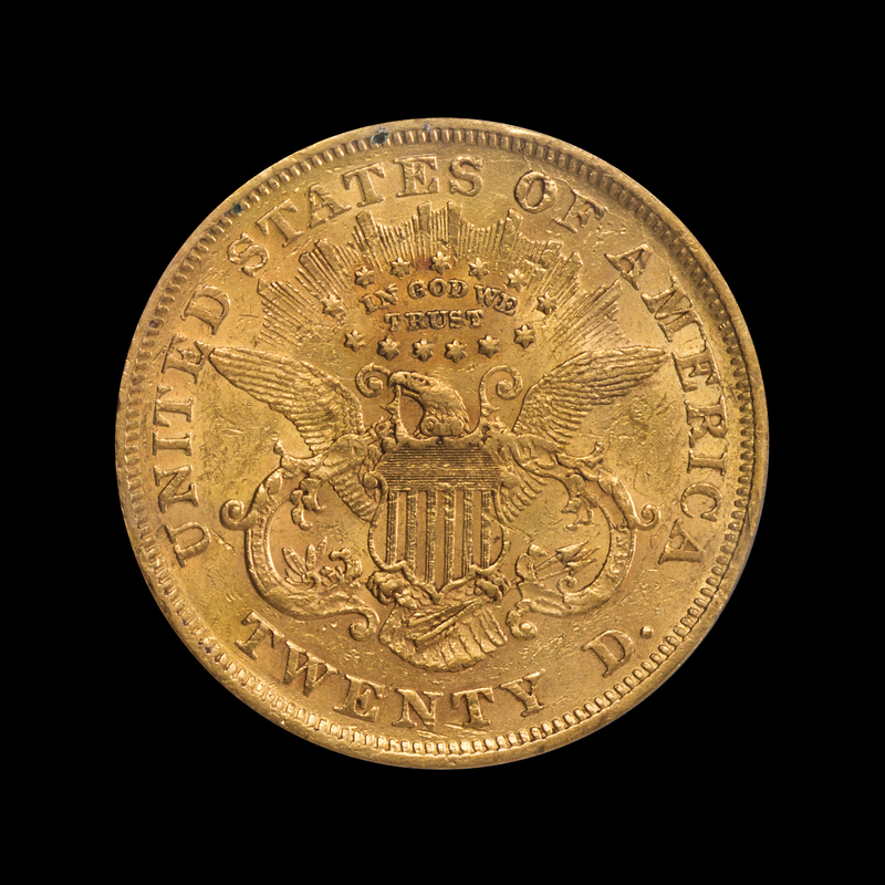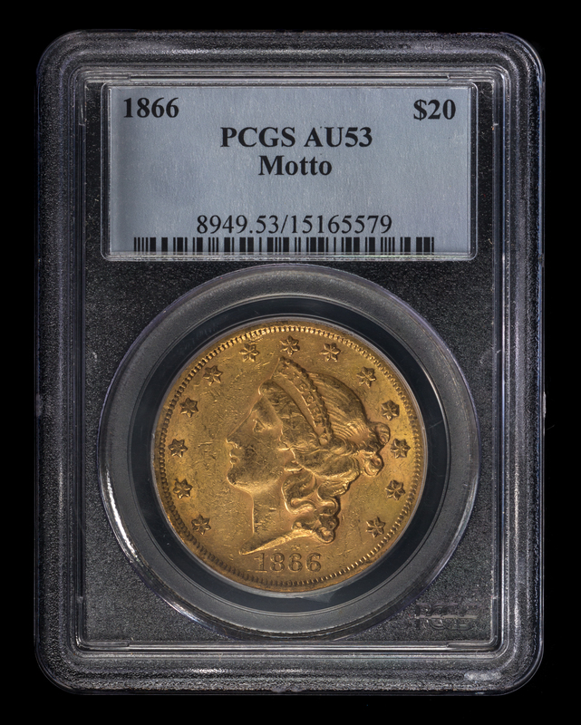 A United States 1866 Liberty Head: Motto $20 Gold Coin