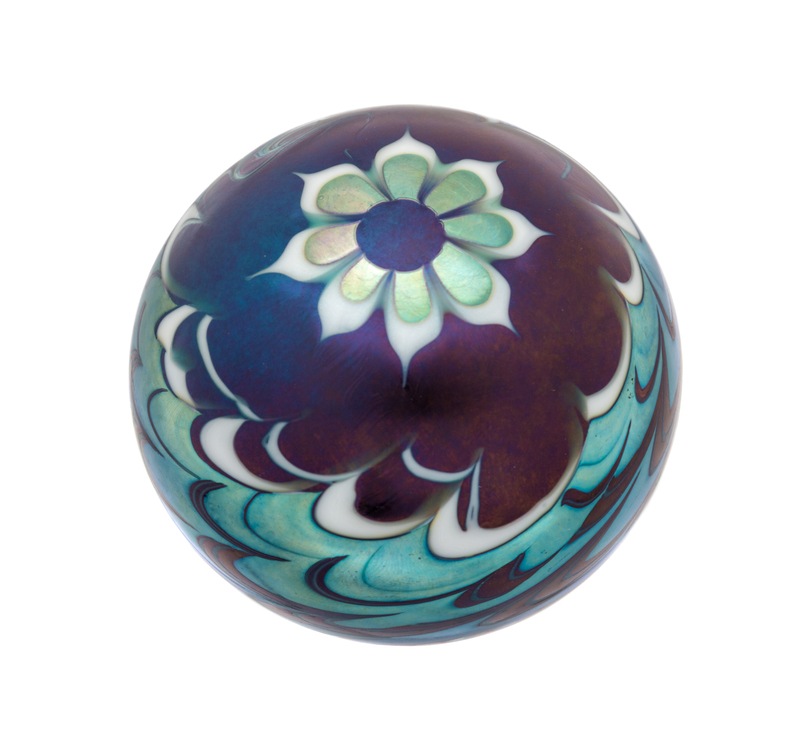 by Steven Lundberg, dated 1975, a sunflower paperweight