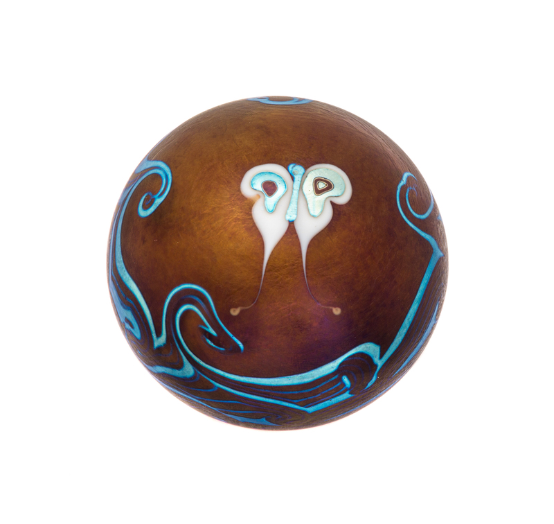 by Steven Lundberg, dated 1979, a butterfly paperweight