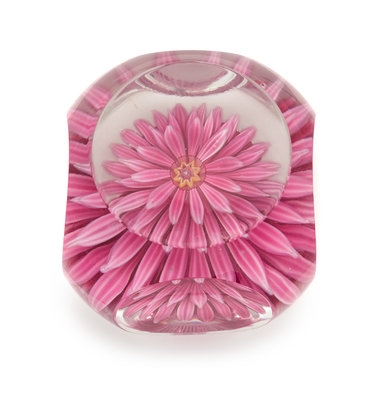 a faceted pink dahlia paperweight