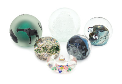 comprising an example marked for R. Strong Creative Glass, one signed and dated 1984, one signed and dated 1996, with the other three apparently unmarked