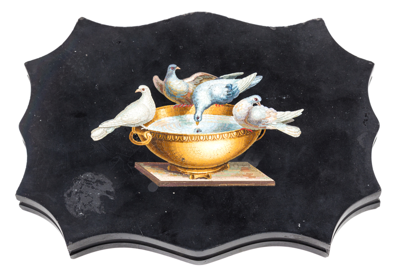 depicting the doves of Pliny in black marble.