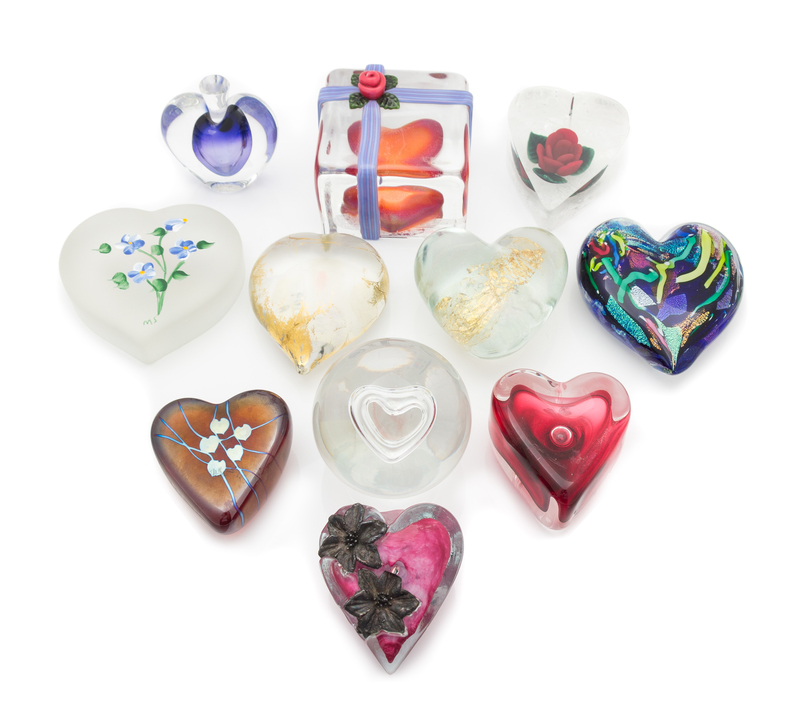 Eleven Heart Shaped Paperweights