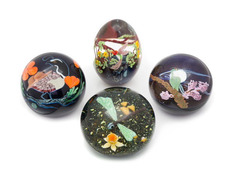 with bird or insect design, examples by Orient and Flume, Baccarat, and Steven Lundberg.