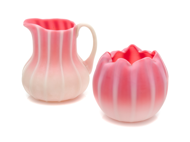 a peachblow pitcher and vase