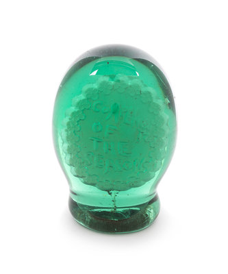 An Antique English Green Glass Sulphide Doorstop