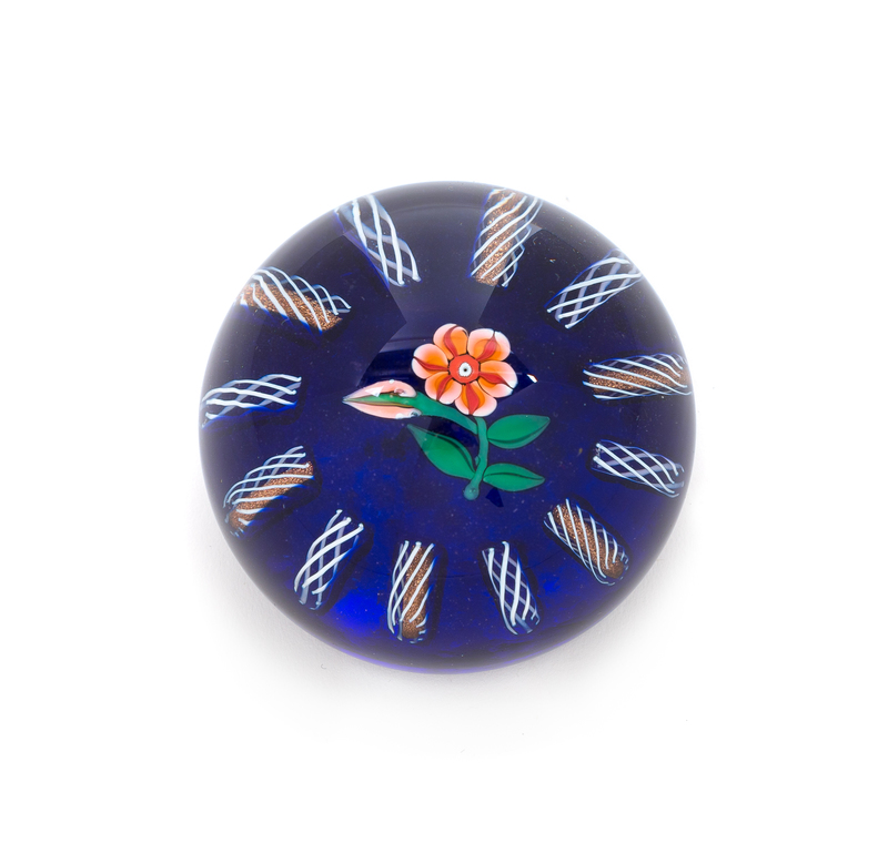 a translucent blue-ground flower paperweight