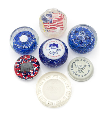 A Group of Seven American Commemorative Glass Paperweights