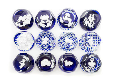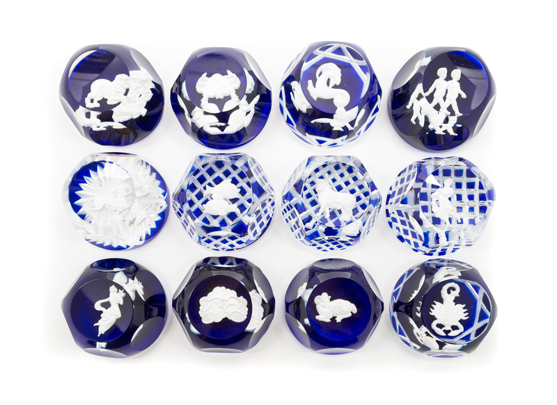 fourteen zodiac sulphide paperweights