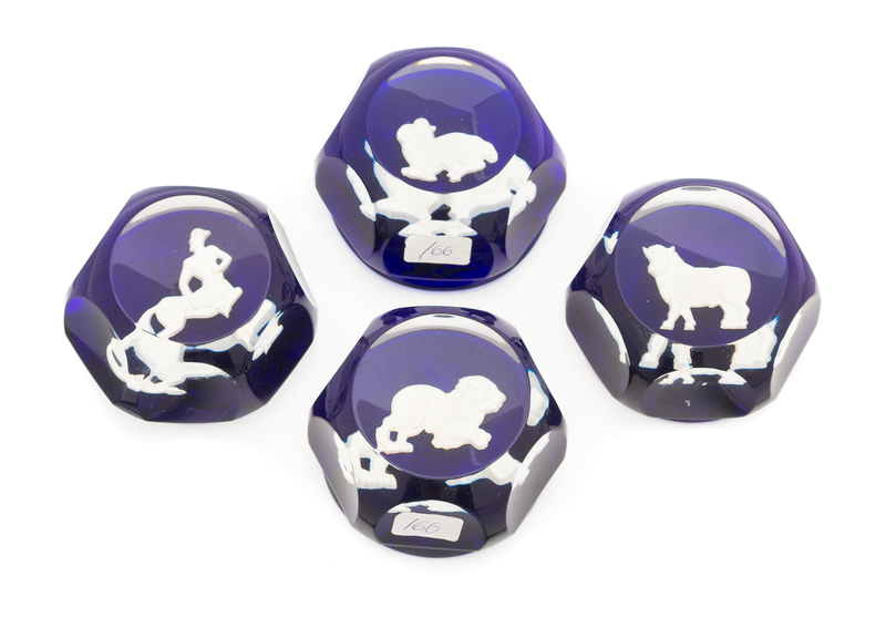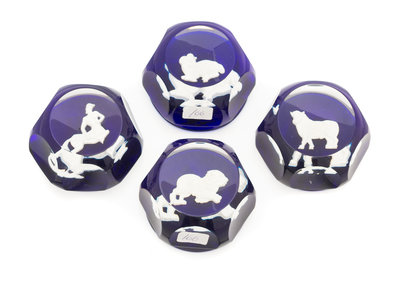 four paperweights with zodiac symbols