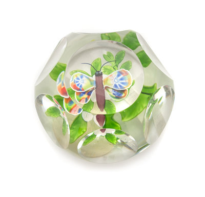 a faceted butterfly and double clematis