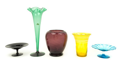 a group of 5 glass articles, comprising three vases and two compotes