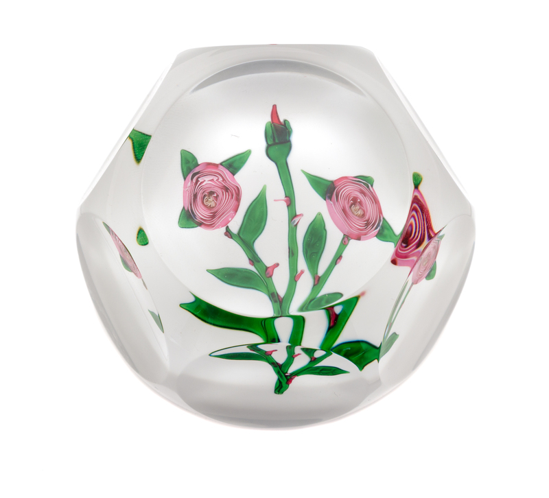 a cabbage rose paperweight, dated 1976