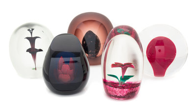 A Group of Five Glass Paperweights