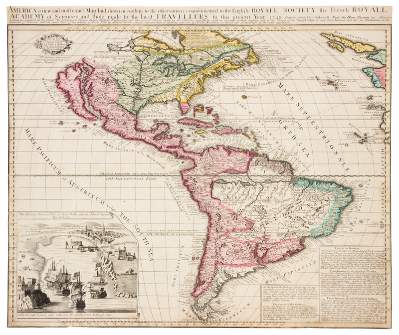 [PORTO BELLO]. America a new and most exact Map laid down according to the observations communicated to the English Royall Society the French Royall Academy. London: Thomas Bakewell, 1740.