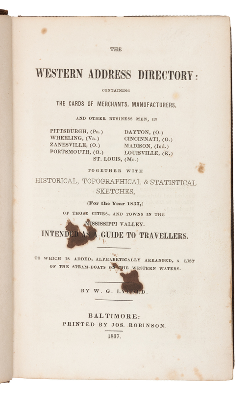 LYFORD, William Gilman (1784-1852). The Western Address Directory. Baltimore: Jos. Robinson, 1837.