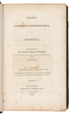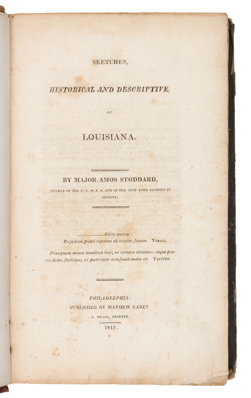 STODDARD, Amos, Major (1762-1813). Sketches, Historical and Descriptive, of Louisiana. Philadelphia: Mathew Carey, 1812.