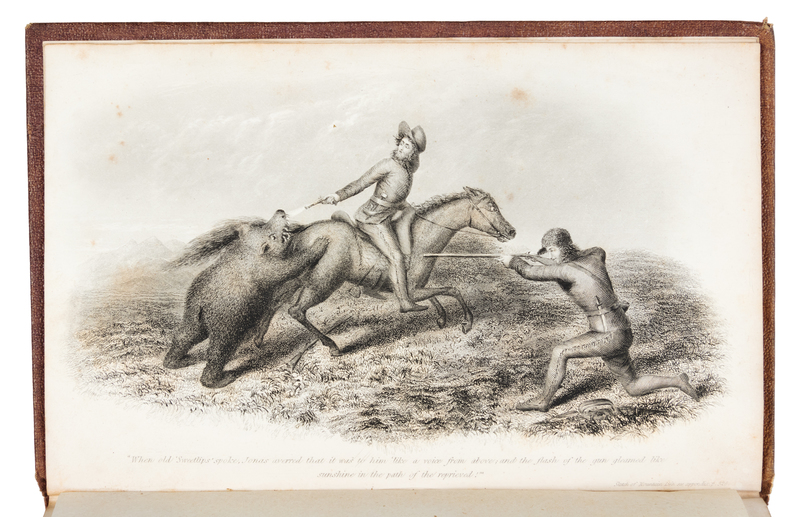 8vo (217 x 140 mm). Engraved frontispiece, engraved folding map. (2-in. tear to folding map at stub, light spotting as usual.) Original brown cloth, printed label on spine (some light wear, a few pale stains, spine slightly sunned). FIRST EDITION. "Of particular interest...is the short sketch entitled 'The Pawnee Sacrifice' describing a vain attempt by a party of whites to rescue a woman captive of the Pawnees" (Graff) and the "Sketch of Mountain Life" (pp.307-334). After serving in the Army, Wetmore settled in Missouri in 1833 where he and Col. Charles Keemle ran the Saint Louis Missouri Saturday News. Graff 4615; Howes H-296; Sabin 103064; Streeter III:1802; Wagner Camp 69.