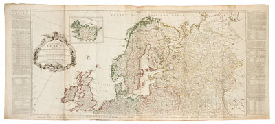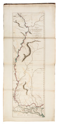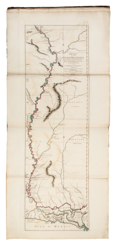 Folio (558 x 345 mm). Title printed in red and black, 23 engraved maps on 35 double-page and folding sheets hand-colored in outline. (A few maps with frayed edges, a few tears to folds or margins, occasionally with repairs, some light offsetting.) Contemporary half calf, marbled boards (lower cover detached, upper joint starting, some wear). FIRST EDITION, maps dated 1772 or earlier, with 6 maps relating to the Americas, including the first issue of Ross's Course of the River Mississippi. The map of North America is Emanuel Bowen and John Gibson's An Accurate Map of North America. Describing and distinguishing the British and Spanish Dominions, published by Robert Sayer in London on 2 July 1772. RARE: according to online records, only two copies of the First Edition have sold at auction in the last 30 years. Phillips 3514; Sabin 38021; Stevens & Tree 49c.