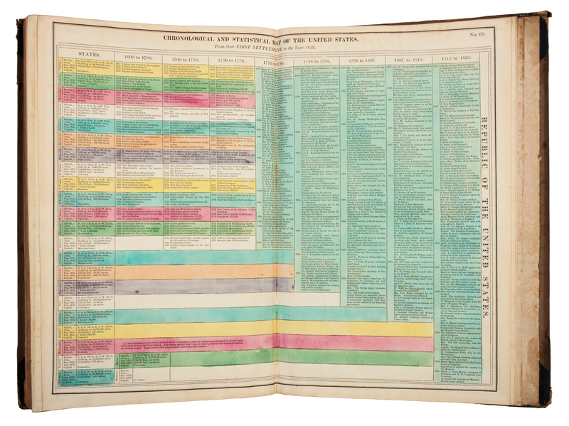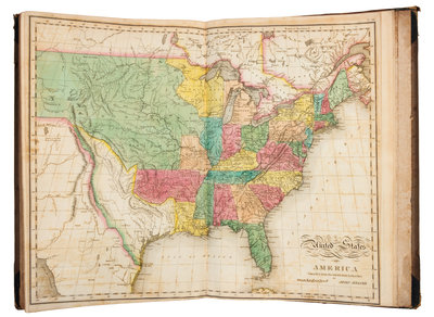 4to (444 x 300 mm). 71 maps, tables, and letterpress leaves, most with hand-coloring, including 28 double-page maps, mounted on stubs. (A few maps slightly frayed in upper margin, some very minor spotting or offsetting, map of the United States trimmed just touching imprint.) Contemporary half green calf gilt, boards (some light wear, a few pale stains). Third American edition. With four maps of America, including a map of the United States by John Melish. Phillips 131; see Rumsey 1642; Wheat Transmississippi 338 (Map of the United States).