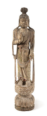 A Chinese Painted Carved Wood Figure of Guanyin