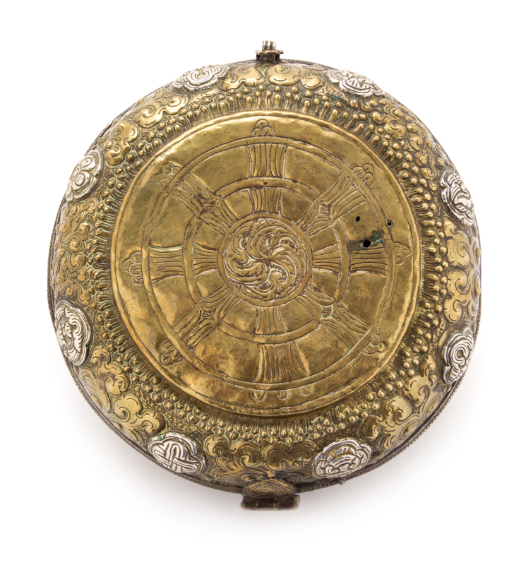 having a repousse decoration showing Buddhist emblems.
