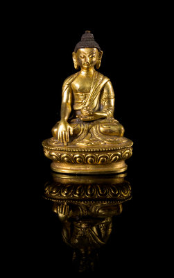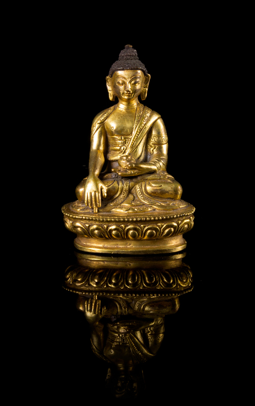 A Small Sino-Tibetan Gilt Bronze Figure of Buddha