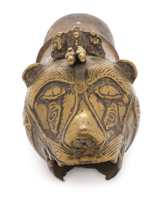 in the form of a tiger or lion head.